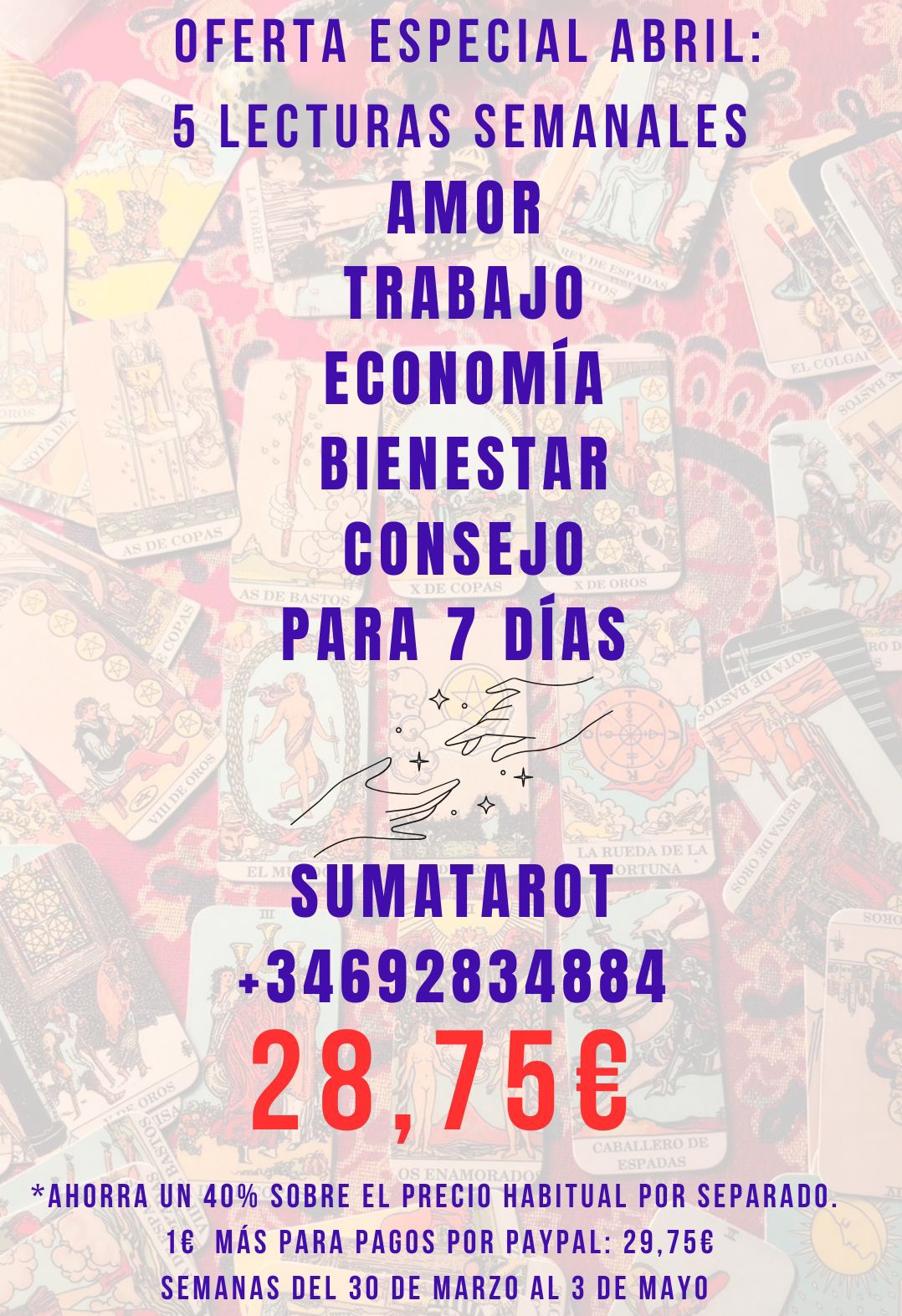 Oferta especial pack de 4-5 lecturas semanales: recibe tu lectura para 7 días cada semana a un mejor precio que si las pides por separado.